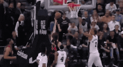 从一个相反的站位距离还有好几步,转身扑过来盖帽,盖帽之后一手挂了一下篮筐,落地还能抢到篮板,每一个描述,都让人觉得反人类啊,难怪都叫他外星人。
