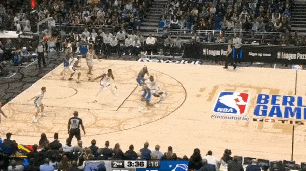 布莱克持球单打康查尔胯下+Crossover突左路,沿底线突破吸引弱侧回收协防后,找到弱侧空位并不断向底角移动做接应点的瓦格纳。